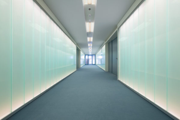 Противопожарные перегородки из стеклопрофилита могут изготавливаться как в полностью остекленном варианте, так и в частично остекленном исполнении. Основное предназначение таких конструкций — это разделение общего помещения на несколько отдельных рабочих зон. При этом преследуется несколько целей: